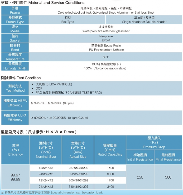 濾網具比色法效率60-65%、80-85%、90-95%可供選擇。 |