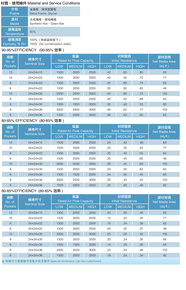 濾袋V型設計,微電腦控制的自動縫袋機準確地連續調整每個袋子從60釐米至20釐米鬆弛車成。V型設計能使每個袋子充份鼓起與相鄰的袋子保有適當的間距,濾袋之縫針孔塗上特殊密封膠,...