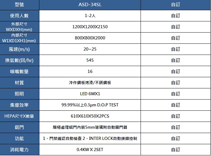 空氣浴塵室 (AIR SHOWER) 為作業者或物品進入 CLEAN ROOM 時用以吹除人體衣服上及設備、物料、工具的塵埃,同時其具有 AIR LOCK 氣鎖功能可以有效...