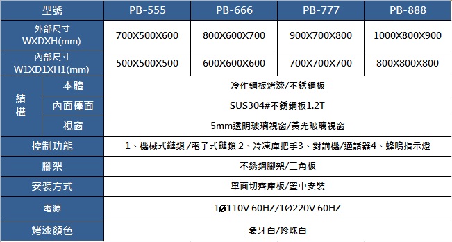 Specification 規格表